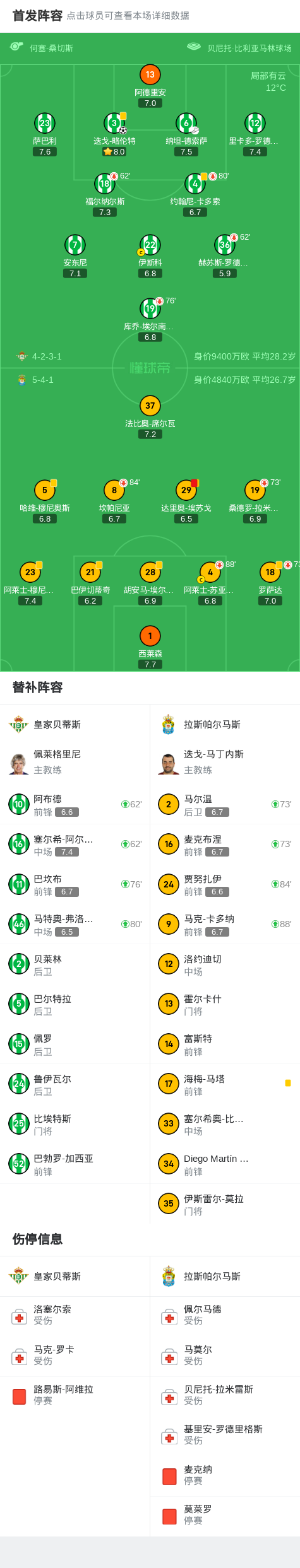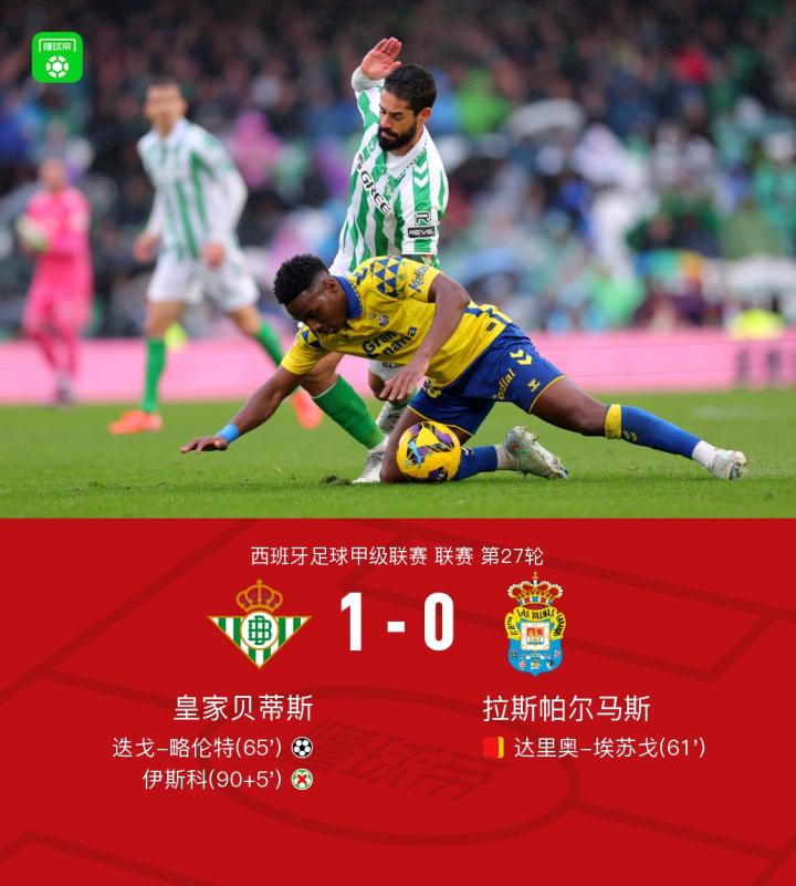 皇家贝蒂斯1-0战胜拉斯帕尔马斯,取得关键胜利